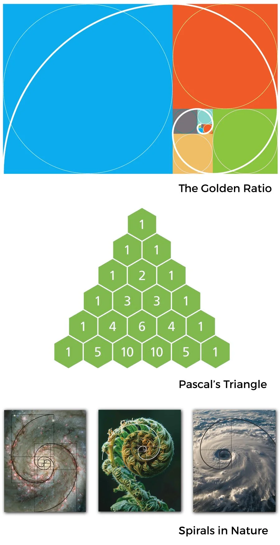 Fractals and spirals hidden in snowflakes, pinecones, and galaxies